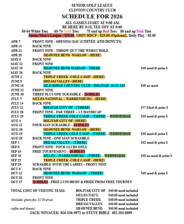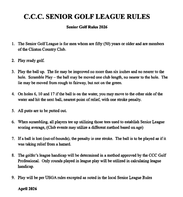 Our Senior Men's Golf League is for men who are fifty (50) years or older. A PDF version of the schedule and rules are available farther down this page.