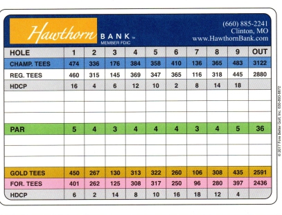 The 18-hole course at the Clinton Country Club facility in Clinton, Missouri features 6,507 yards of golf from the longest tees for a par of 72 . Designed by Kevin Pargman, the new golf course opened at its current location in 1993. Rodney Hunter is the Course Superintendent.